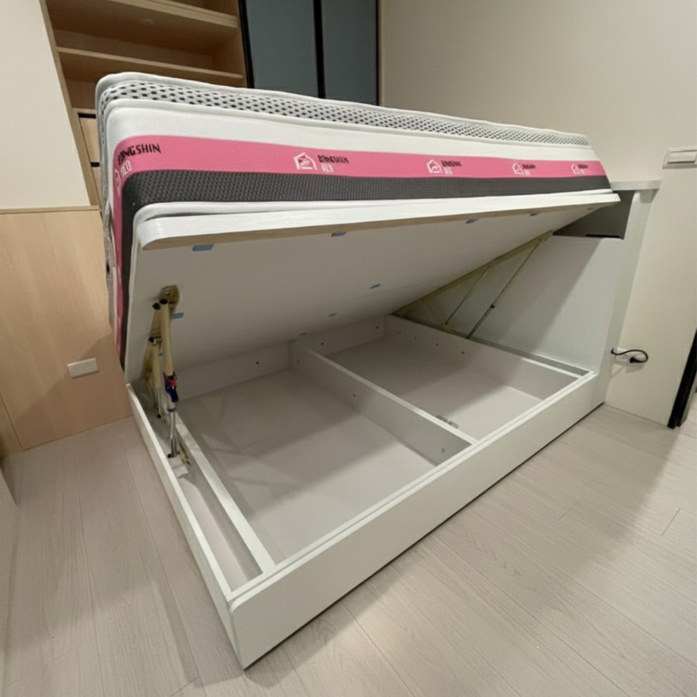 1.安全省力緩衝掀床標準雙人5×6.2尺F1木心板-浮雕白梣木色。