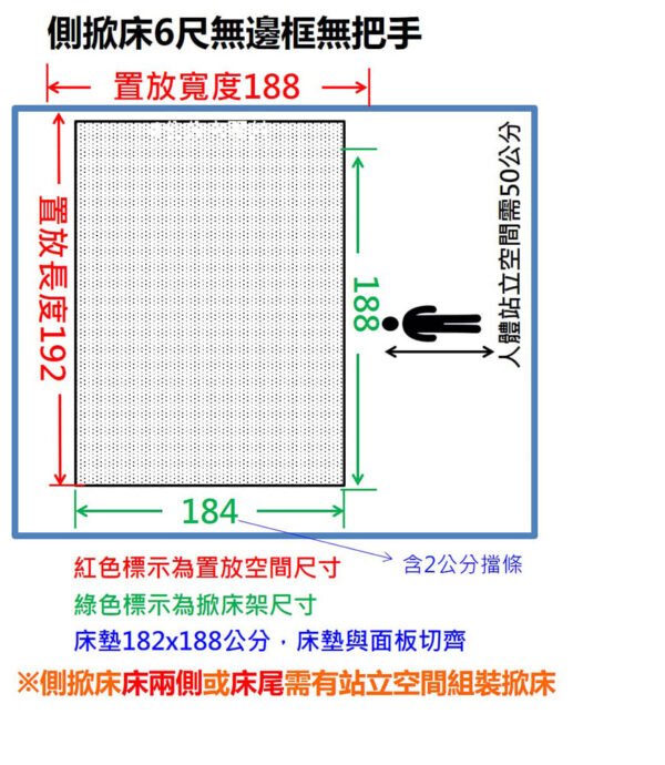 4.掀床體如有(箱體加高)或(加高腳)再加上(床墊厚度)需考慮上下床的方便性。掀床無床墊,床面板會自動彈起來為正常現象。