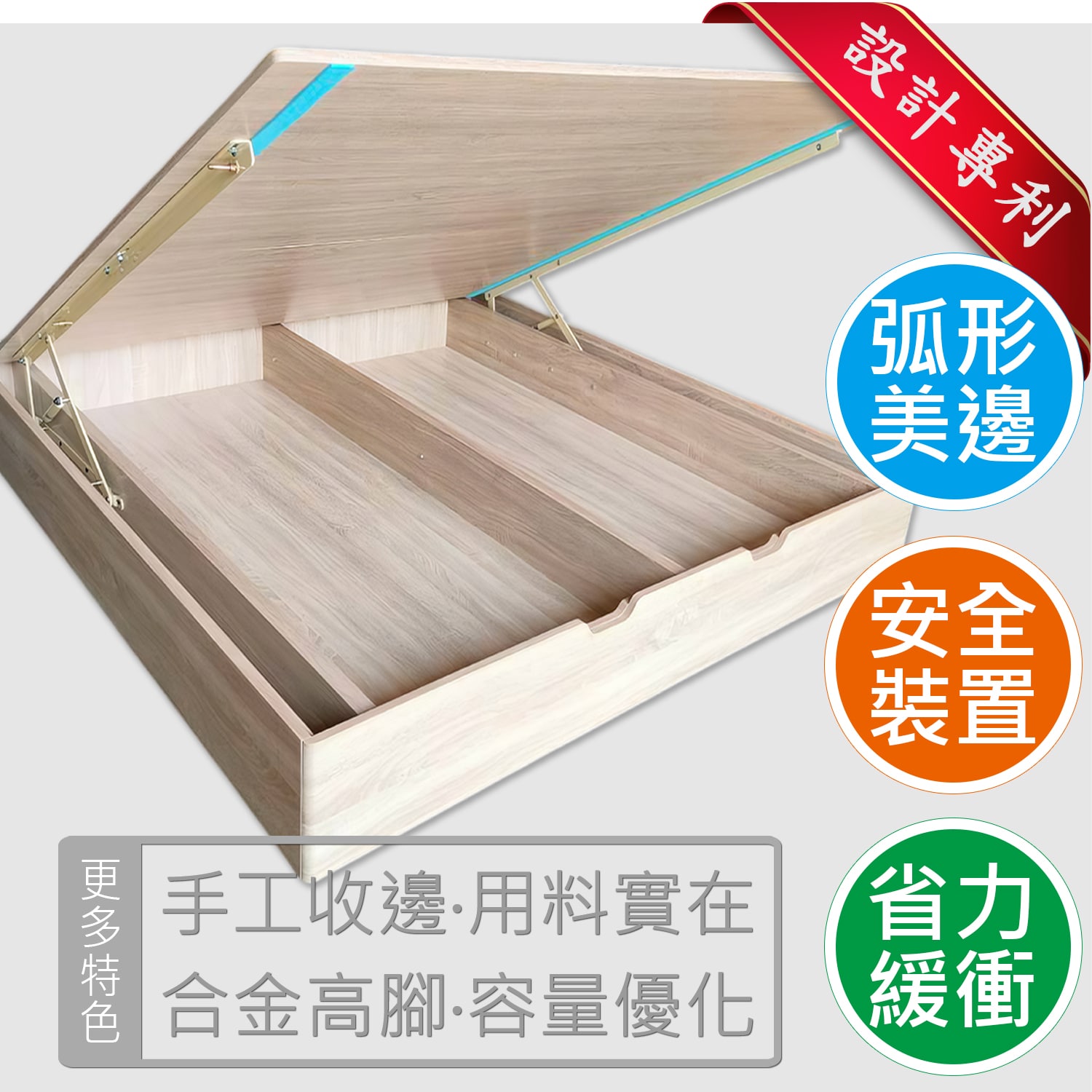 大一桶款安全省力緩衝後掀床(日本檜木)